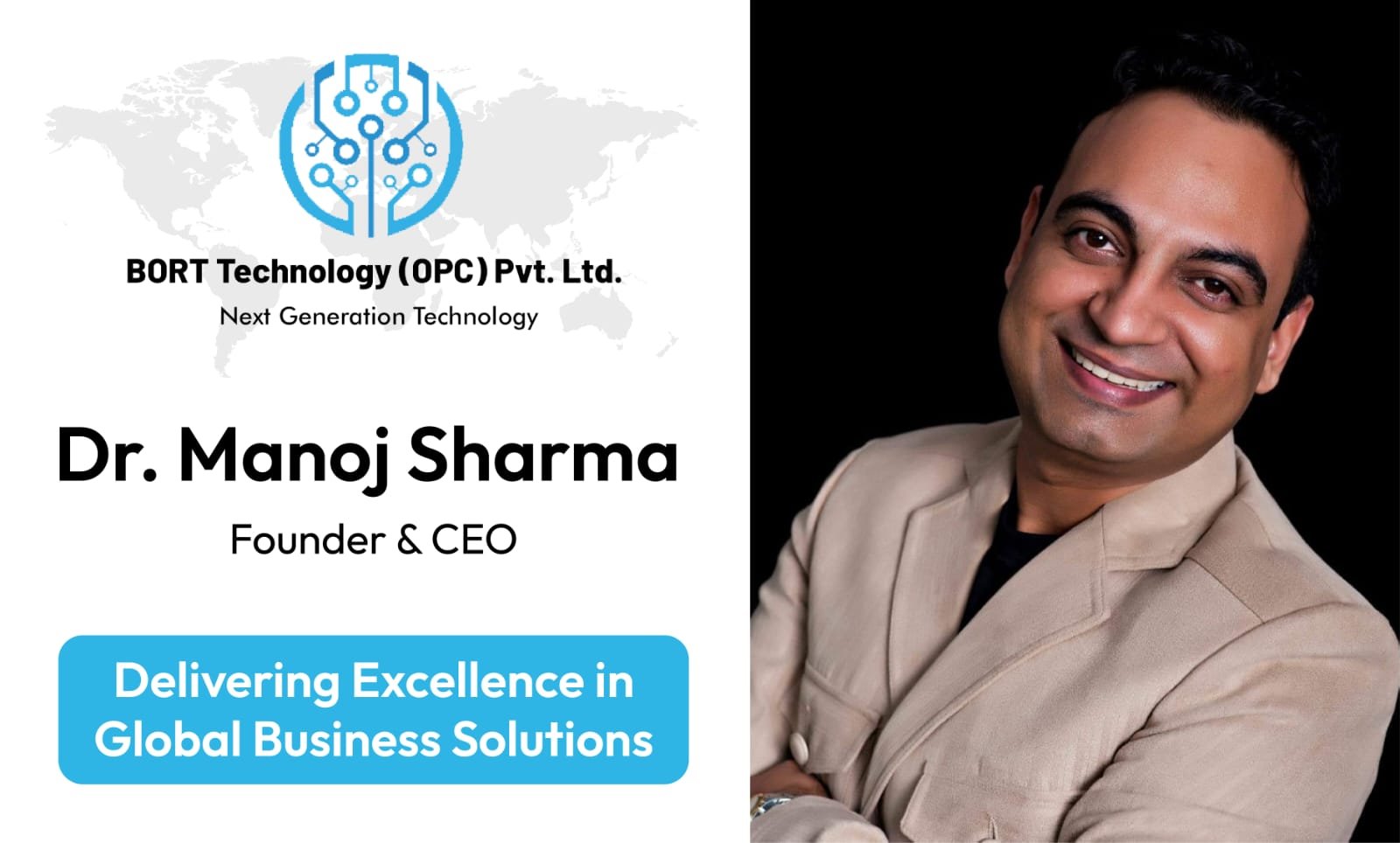 In an era where innovation and integrity must walk hand in hand, Dr. Manoj Sharma stands tall as an exemplary entrepreneur redefining leadership for the modern world. As the founder and CEO of BORT Technology OPC Pvt. Ltd., he has carved out a unique space in the global business landscape by blending strategic thinking, social responsibility, and a relentless drive for excellence.